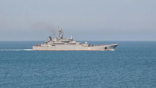 Большой десантный корабль "АЗОВ" входит в Севастопольскую бухту.