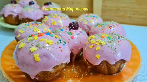 Кексы на кефире! Нежные кексы с вишней и вишневой глазурью!Простой рецепт! Кексы- маффины!