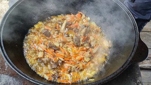 Плов в казане на костре. 😋 Дачный сезон открыт! Смотреть со звуком.