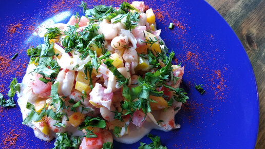 Что можно приготовить быстро с белой консервированной фасолью? Да, да, конечно салат! И заправку из аквафабы..