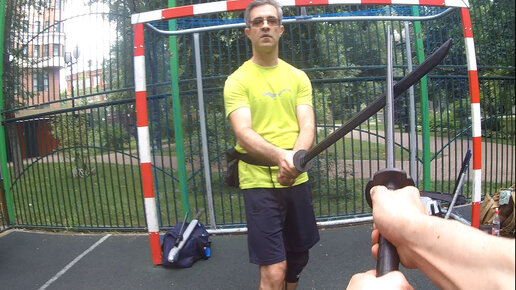 Фехтование и приемы катаной. Круг шесть и удар катаной в соединении