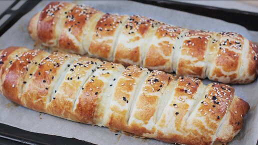 Слоеный рулет "Сытный". Выпечка из слоеного теста.