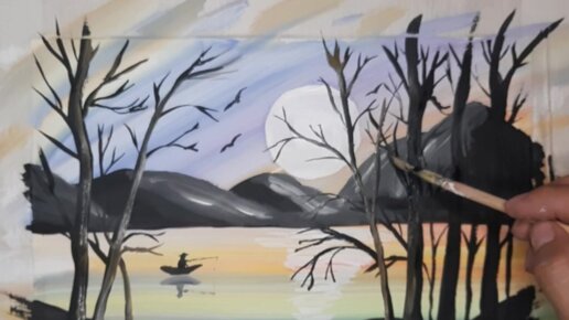 Далее: Рисуем вечернее озеро. Легкая картина гуашью для начинающих