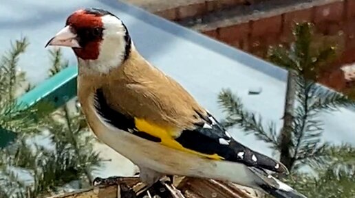 Как хитрая парочка щеглов подкрадывается к кормушке.