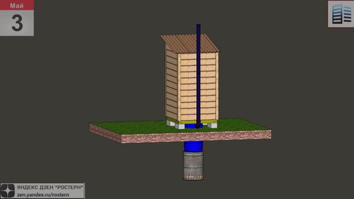 Уличный туалет с вытяжкой и ямой из бочки самострой