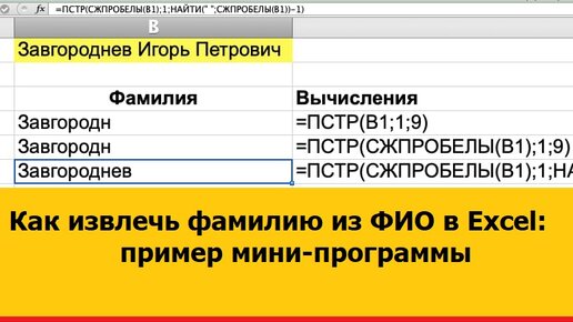 Извлечение фамилии из ФИО в Excel: как составить программку из функций
