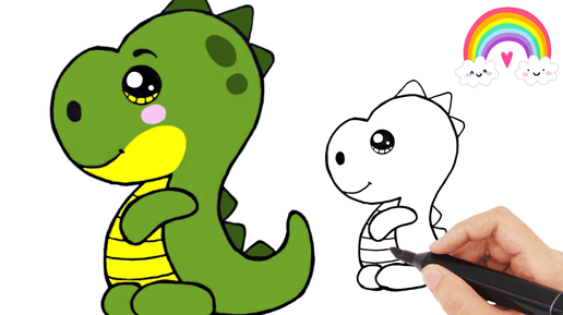 Как нарисовать ДИНОЗАВРА шаг за шагом | Простые уроки рисования | Рисунки для срисовки ❤