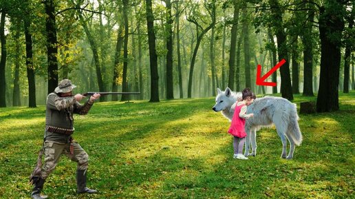 Девочка заслоняла собой белую волчицу от охотника, ведь она была ее лучшей подругой