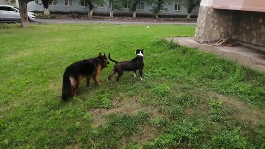 Стаффорд и Немецкая овчарка.Красивые собаки