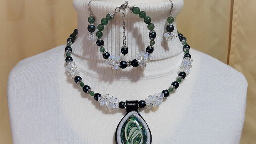 Украшение с кулоном из эпоксидной смолы и керамики!!!