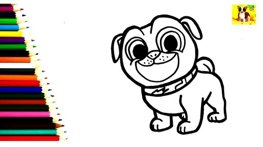 Мопсы.Рисунок раскраска для детей и малышей.Как рисовать Мопса.