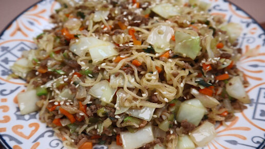 Лапша Быстрого Приготовления с Фаршем и Овощами Рецепт