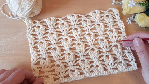 Вяжем ажурный узор "Ушки" крючком.