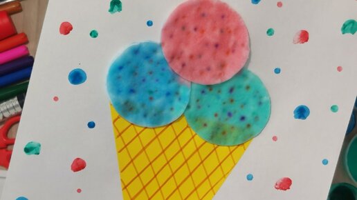 Поделка мороженое из ватных дисков. Рисуем шприцом. Детские поделки