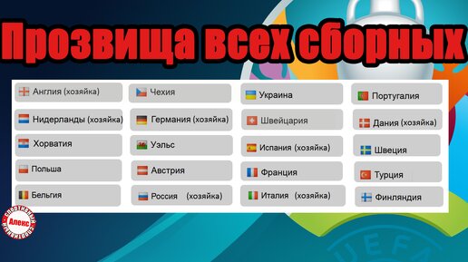 Прозвища и самоназвания всех сборных чемпионата Европы по футболу.