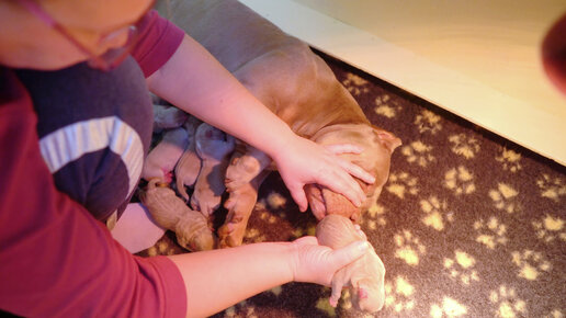 Собака первый раз видит своих щенков! Почему пытается их укусить?