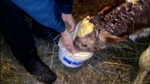 отелилась корова Белка //первое поение теленка молозивом