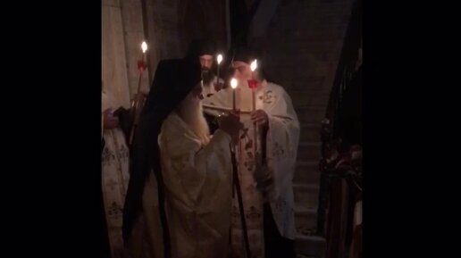 Пасха на Афоне, Греция. "Христос воскресе" поют по-славянски византийским распевом