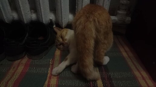 Котик уснул стоя в смешной позе. Такого раньше я ещё не видел