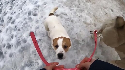 Щенок первый раз на поводке и ошейнике