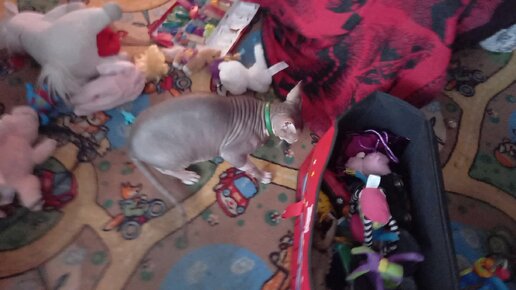 Кошка сфинкс поймала мышь и принесла ее хвастаться.