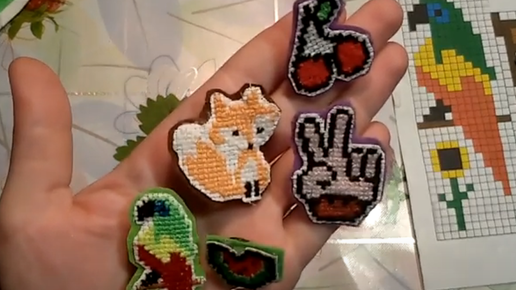 Значки-брелки на рюкзак своими руками. Вышивка крестиком