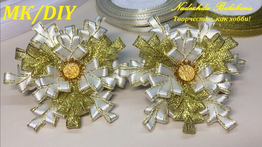 Бантики - "Снежинки", для Новогоднего бала, из узких лент.
