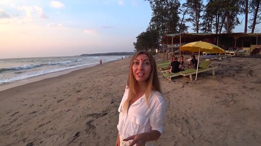 Море в Индии - девушка на пляже рассказывает о местных красотах