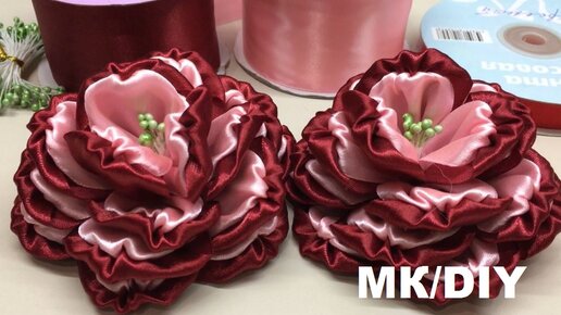 Далее: Цветы из органзы и атласной ленты, тёмно-розового и лавандового цвета.