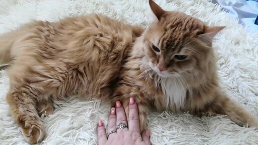 Сибирский рыжий кот не любит, когда трогают его лапы