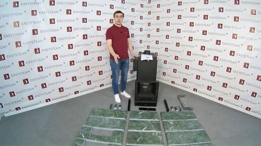 Сборка печи СОЧИ в четырёхстороннем кожухе из природного камня змеевик