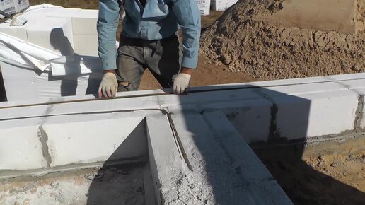 Подглядел, как строители армируют первый ряд пеноблоков при строительстве дома