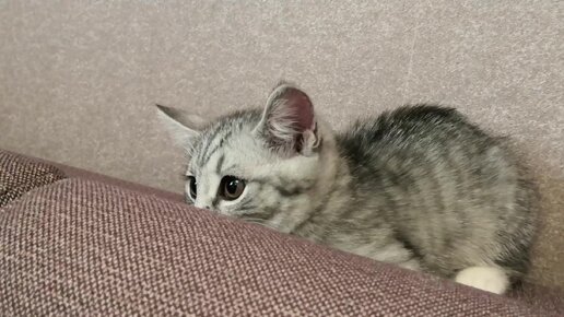 Маленькая шотландская кошечка играет, глазки очень милые