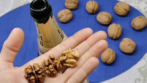 Ядро ореха остается целым: Чищу при помощи бутылки от шампанского, одним махом. Другие способы проигрывают