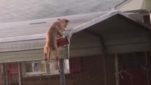 Пёс-скалолаз запрыгнул на крышу дома