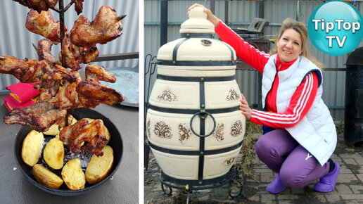 Купила гигантский толстый тандыр! Первый обжиг тандыра и готовлю крылья с картошкой одновременно, что получится?