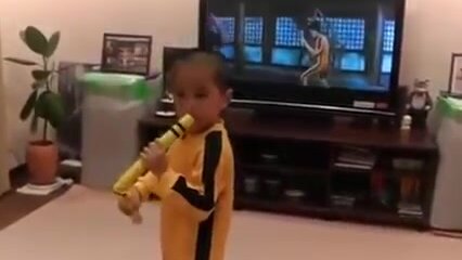 Малыш смотрит фильм Игра смерти и копирует Брюса Ли