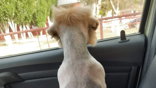 Во время стрижки у нашей модницы - пекинеса Эльзы случился приступ. Но все обошлось и, сияя красотой, она храбро защищала машину