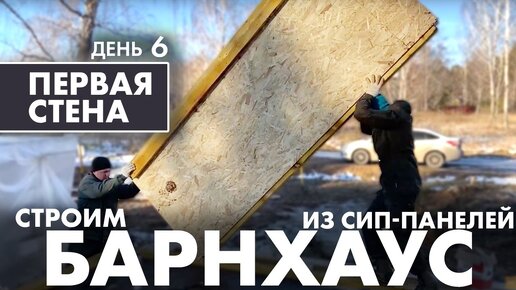 Строим БАРНХАУС из СИП-панелей. ПЕРВАЯ СТЕНА дома. (ДЕНЬ 6)