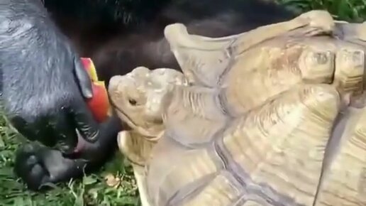 Дружба не знает границ. Обезьяна угостила голодную черепаху яблоком