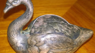 Солонка. Лебедь. 19 век. Клеймо мастера. Серебро. 950 проба Англия. 84 проба Российская Империя.