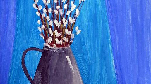 Как нарисовать натюрморт с вербой гуашью. Мастер-класс для детей.