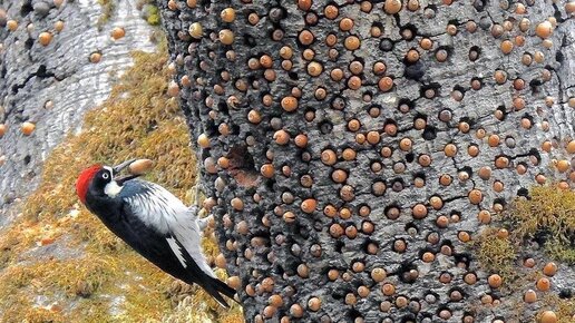 Желудевый дятел: Безумная мания запасать десятки тысяч желудей | Видео 🎥