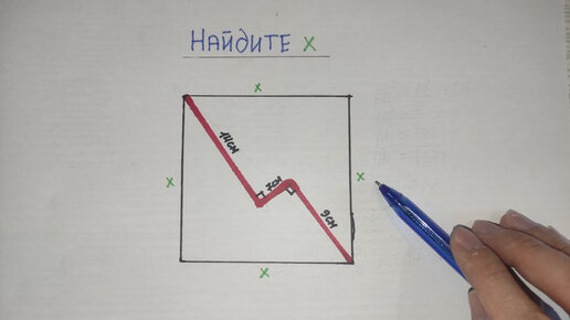 Долго думал над решением задачи, а надо было применить теорему Пифагора. Задача из геометрии, найдите "х"