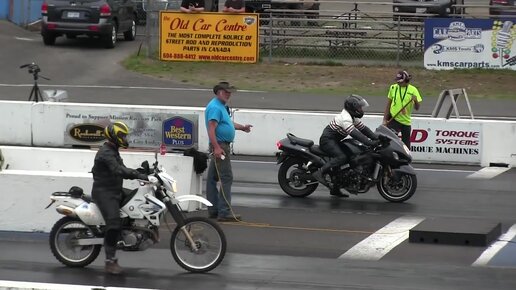 Уличный байк Kawasaki против внедорожного мотоцикла Suzuki ,скорость, дрэг-гонка