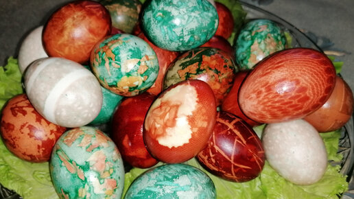 ЕЩЁ ОДИН ВАРИАНТ ПОКРАСКИ ЯИЧЕК(ЗЕЛЁНКА+ЛУКОВАЯ ШЕЛУХА+РИС)