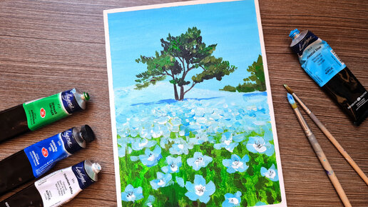 Цветы цвета неба. Картина, с пошаговой инструкцией!