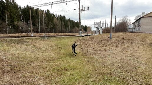 Щенок Дар на железной дороге на маленьком сельском полустаночке. Смотрится совсем, как местный