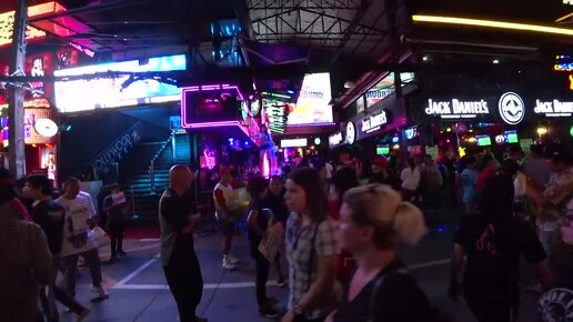 Отдых в Таиланде - русские развлекаются на улице желтых фонарей