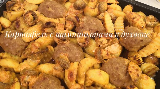 Картофель, запечённый с шампиньонами в духовке. Вкусный картофель в духовке